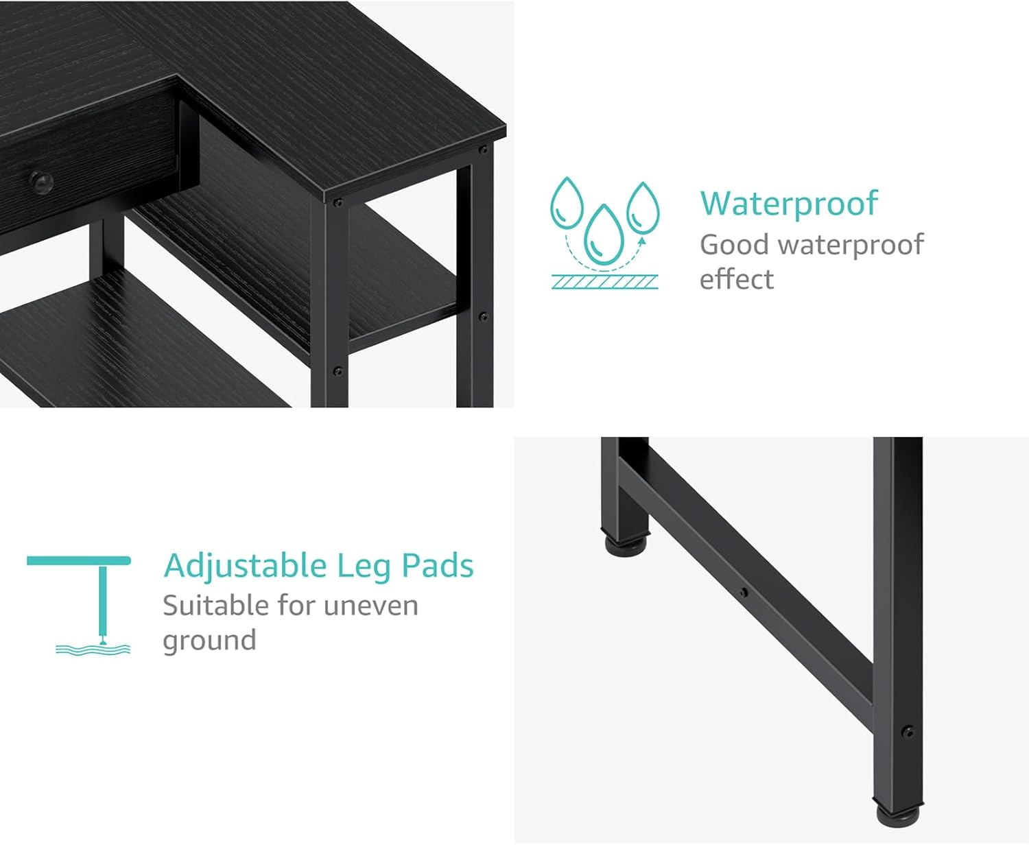 - Sturdy Construction: Equipped with reinforced steel brackets and adjustable leg pads for enhanced stability and a level desktop. Non-slip, anti-scratch protectors under the legs prevent floor damage and reduce noise when moving. Ideal for teenagers or writers’ workstations